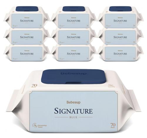 - 쿠팡구매대행 - 베베숲 시그니처블루 물티슈 캡형 75g, 70매, 10개
