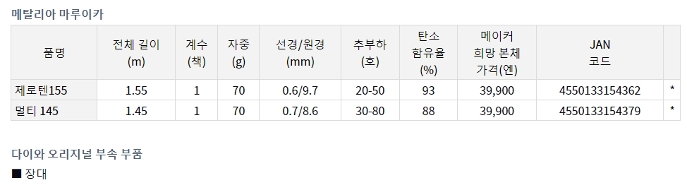 다이와 메탈리아 마루이카 선상로드 루어대 [한국다이와]