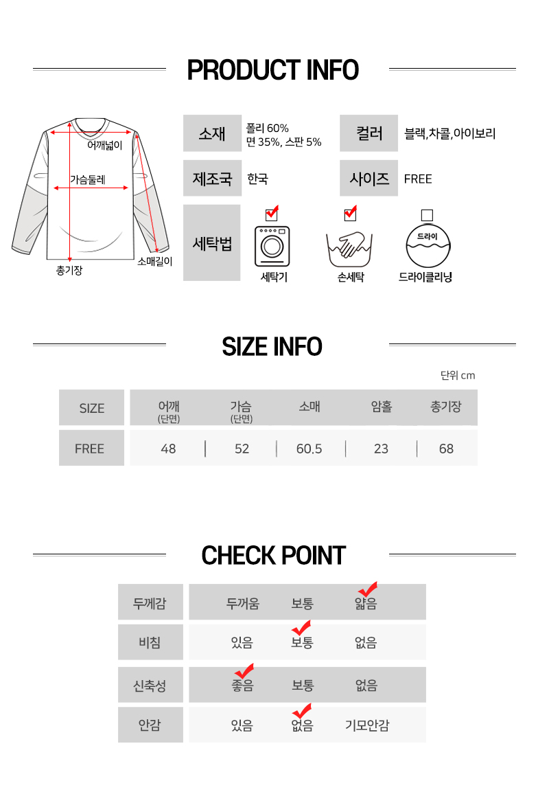 세탁방법 및 취급시 주의사항 제품 상세정보 참고