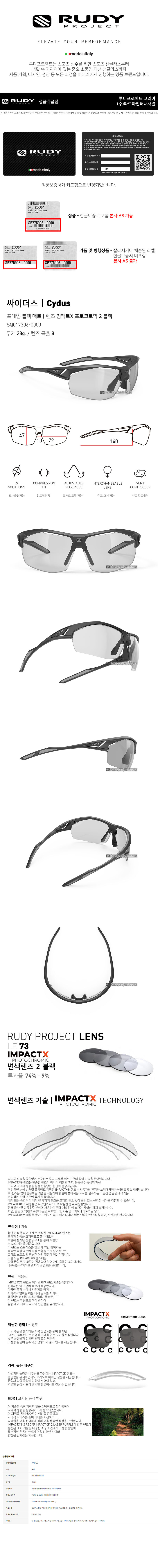 루디프로젝트 스포츠 선글라스 싸이더스 블랙 매트 SQ017306-0000 변색